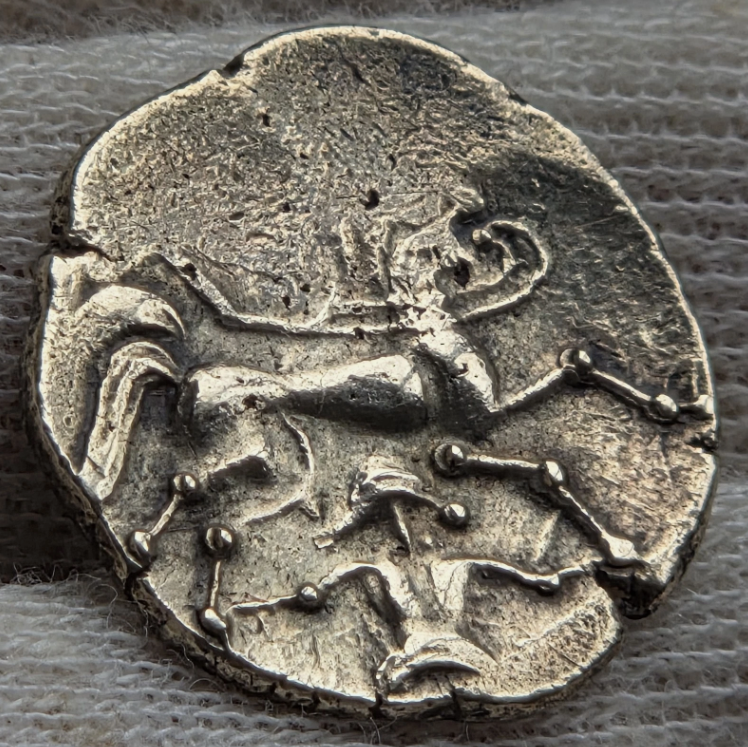 Monnaie, Gaule, NAMNETES, Statère au génie hippophore, Or pâle, -70 à -50, 7.17g