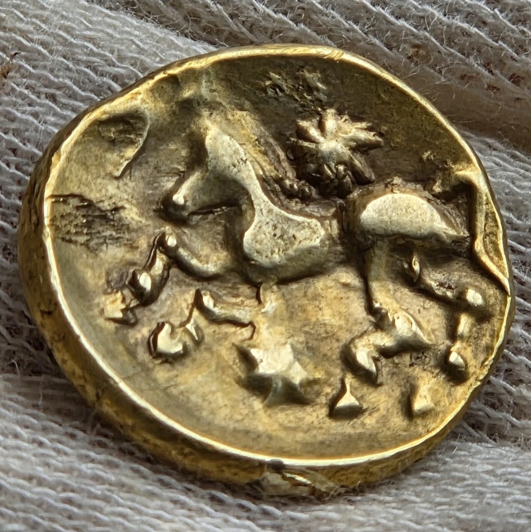 Monnaie, Gauloise, Statère à l'astre, Cheval à gauche, Bellovaques, R2, 6.23g